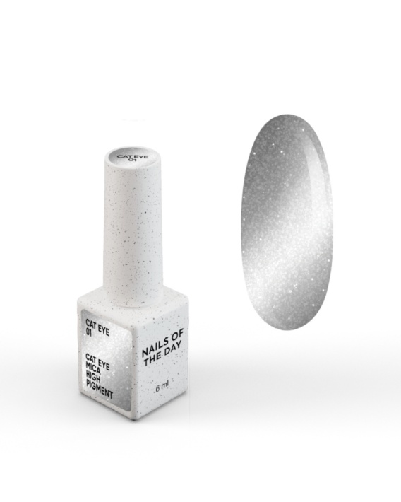 NAILSOFTHEDAY Cat Eye Gel Polish 01 to srebrno-szary lakier hybrydowy z efektem kociego oka i subtelną drobinką odblaskową, która tworzy eleganckie, magnetyczne refleksy widoczne w każdym świetle. Chłodny, metaliczny odcień nadaje stylizacji nowoczesny i luksusowy charakter.