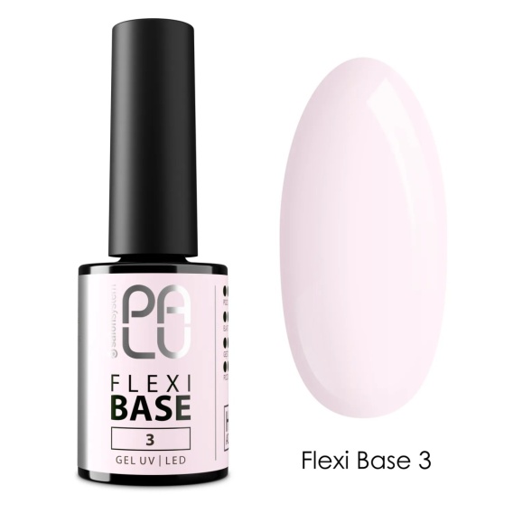 PALU Flexi Base 3 11 g to bezkwasowa baza hybrydowa w subtelnym, rozbielonym odcieniu różu. Idealna do naturalnych stylizacji, manicure typu babyboomer oraz jako delikatny, samodzielny kolor podkreślający zdrowy wygląd płytki.