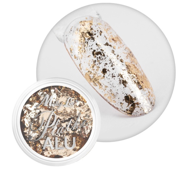Metaliczny pyłek do paznokci MollyLac Płatki Alu Nr 11 – złoty efekt aluminium
